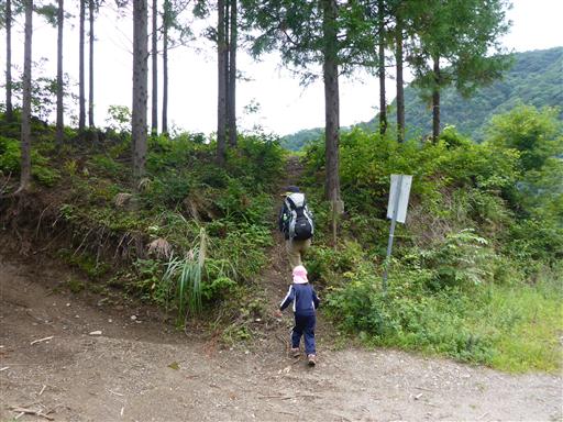 登山道と林道が接したところで、林道に乗り換える。