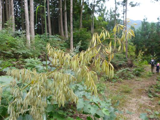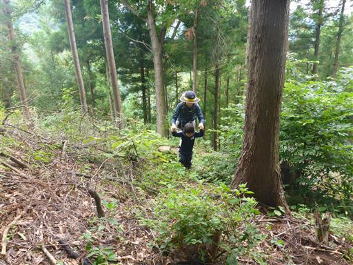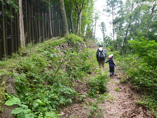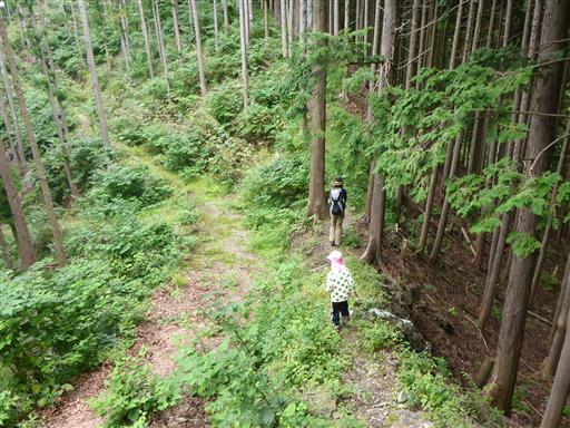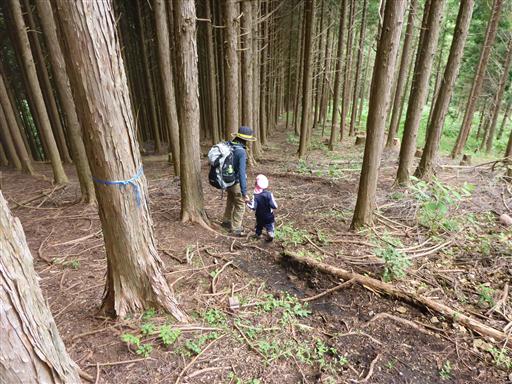 植林地帯の斜面を登って行く。