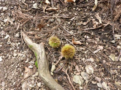 足元にクリの実が落ちている。