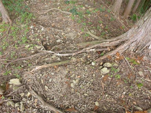 登山道に木の枝が並べられている。
