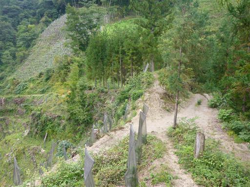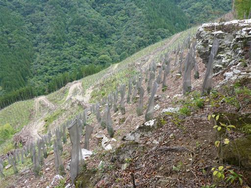 この辺りは植林された幼木が整然と並んでいる。