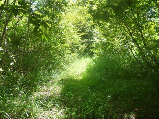 伐採地を過ぎると林道歩き。長くは続かないが非常に暑い。