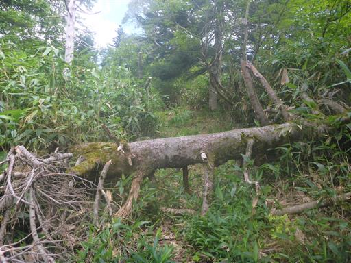 再び倒木。枝があって乗り越えるのが大変だ。
