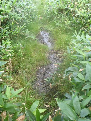 片藤沼に到着。草付きの平坦地はかなりぬかるんでいる。