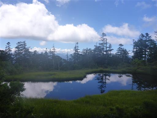 アップダウンが続く登山道は辛かったが、美しい池塘と片藤沼、