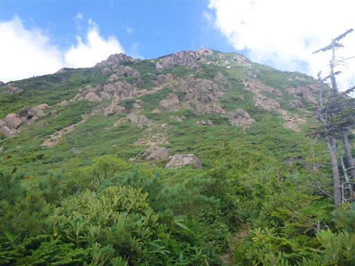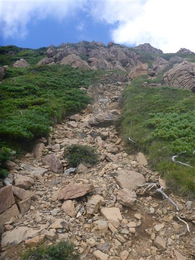 ここからは岩が露出した斜面を登って行く。