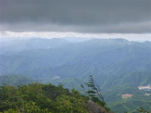遠くに見える山頂が平らな山は苗場山、その手前左は谷川岳。