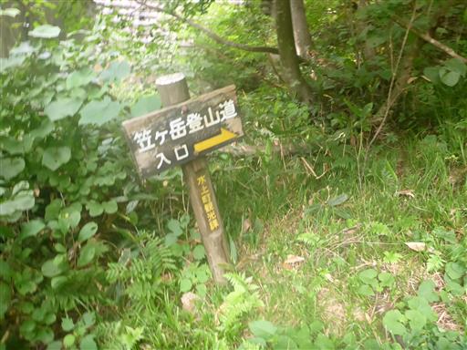 車道を歩いて登山口に到着。ようやく笠ヶ岳の標識を見つける。
