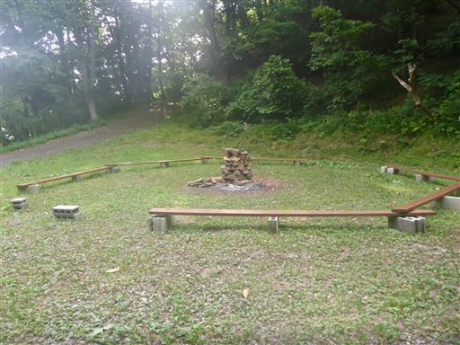 広場には丸く囲んだイスと、真ん中に薪がある。往路にはなかった薪だ。