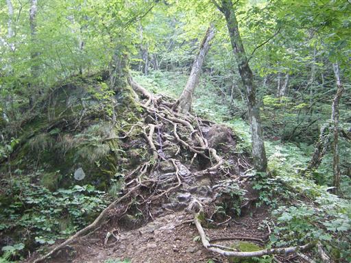 踏跡は薄く、何度も立ち止まってルートを確認しながら下る。