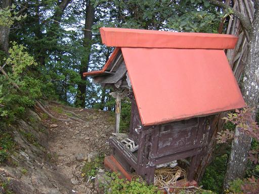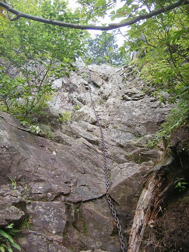 最初の鎖場が現れる。この山の山頂直下は岩が多い。