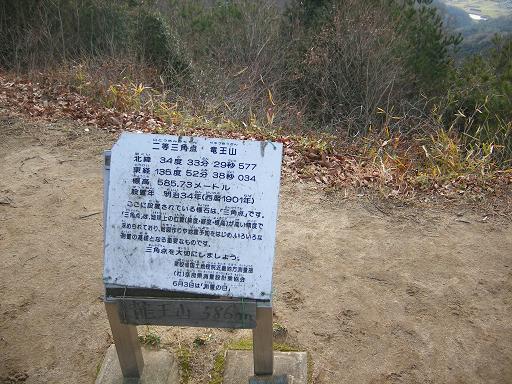 低い山だが二等三角点がある。標高586m。