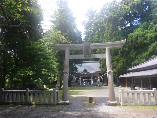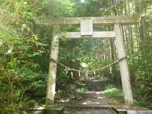 穂積神社の鳥居。登山口の鳥居もそうなのだが、縄の位置がなぜか低い。