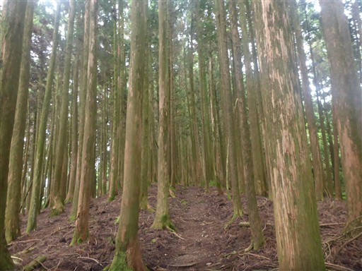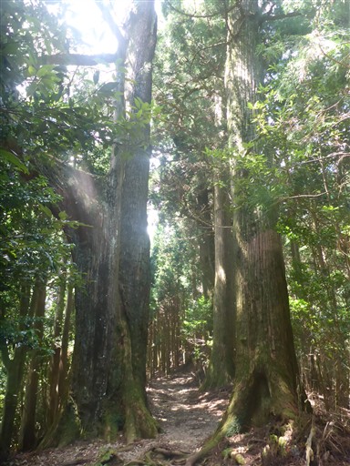ここからしばらくは杉の巨木が立ち並ぶ登山道になる。