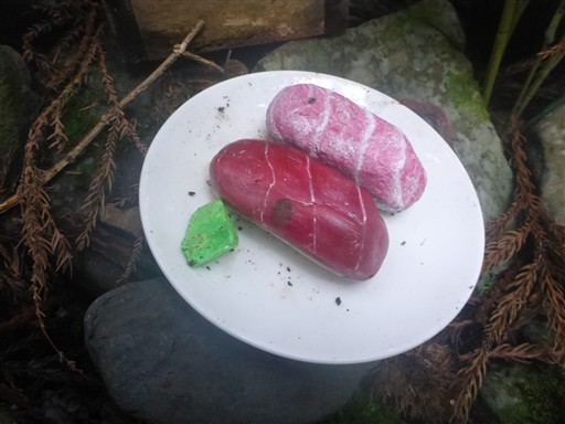 よく見ると、石に絵が描かれている。マグロそっくりだ。