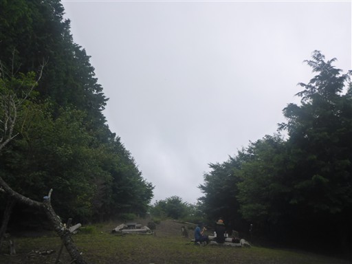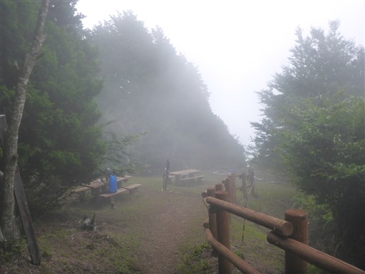 鉄塔があるところで少し展望が広がる。山頂部は雲の中だ。