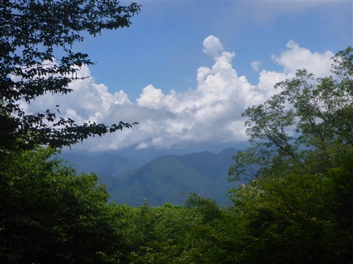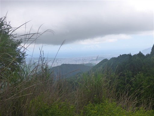 西側の展望が広がっているが、雲が多くて手前の山しか見えない。