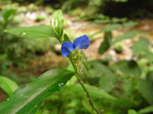 道端に咲くツユクサ。ずいぶん不思議な形をした花だ。