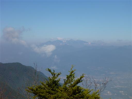 途中で展望が少し開ける。遠くに八ヶ岳が見えている。