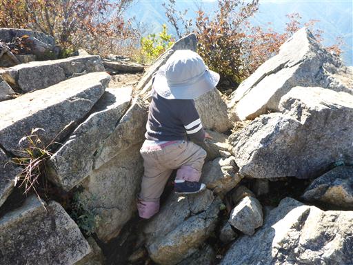 息子は今日も岩登りを楽しんでいる。崖のある山なので目を離すことができない。