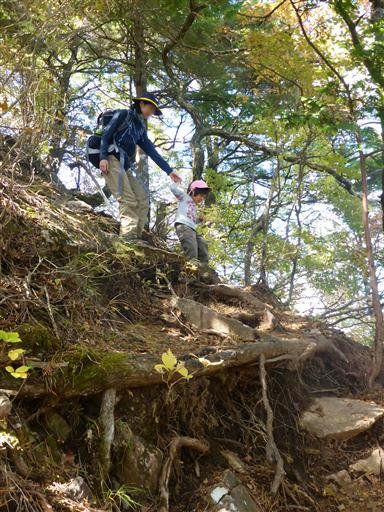 昼食後に下山開始。元来た急斜面の道を下る。