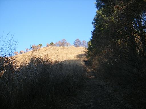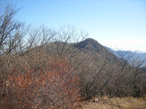 山道から杓子山を望む。