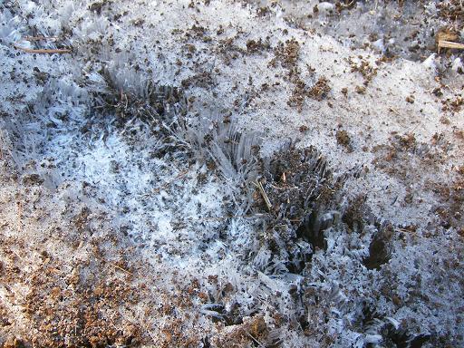 長さ5cmはある霜柱で埋め尽くされている。歩くと靴が半分埋まる。