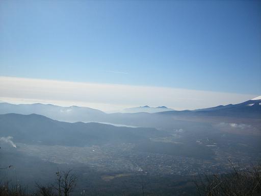 山中湖方面。太平洋側は雲がかかっているように見える。
