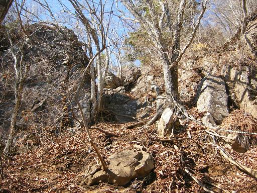 小規模な岩場。下りも相変わらず急坂。