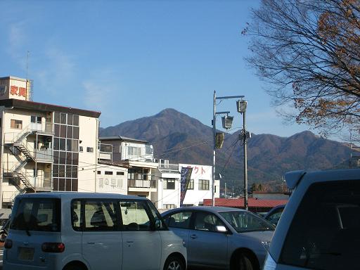 富士吉田駅から杓子山を望む。
