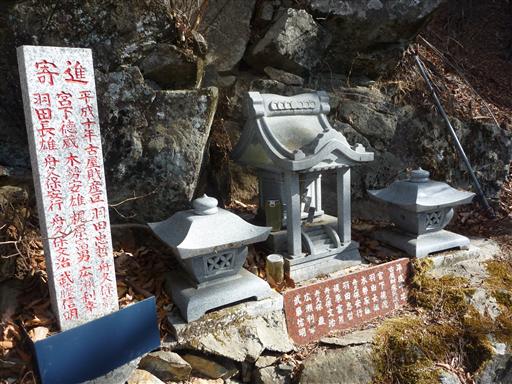 登山道から20m離れたところにある根元神社。平成10年とあるのでかなり新しい。