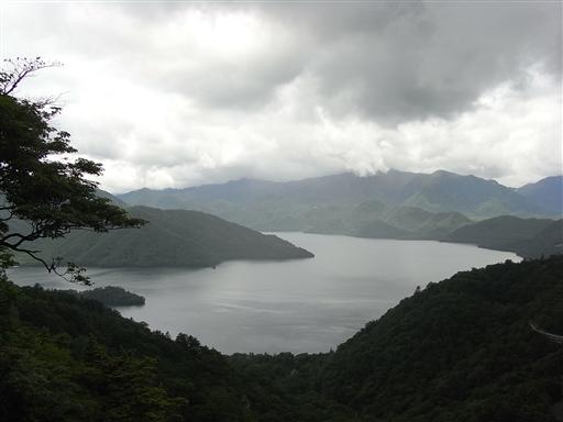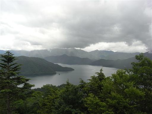 展望所から中禅寺湖を望む。相変わらず空はどんよりとしている。