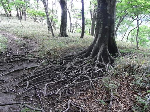 木の根が激しく露出している。これだけ土が流れると大変だろう…
