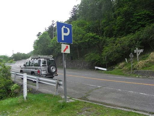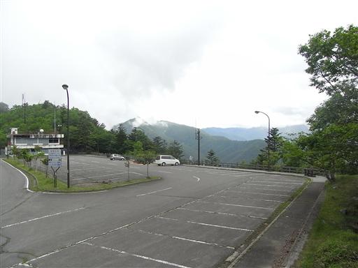狸山を下ったところで再び車道に出合い、大駐車場に到着する。