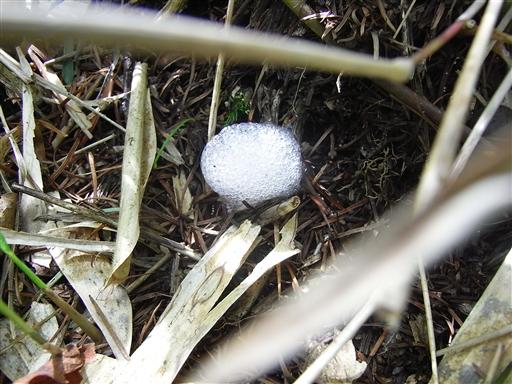 登山道脇には小さな泡があちこちに見える。何かの卵だろうか?