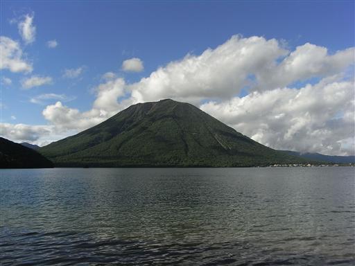 中禅寺湖の向こう側に見える男体山は非常に存在感がある。