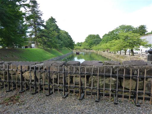 彦根城の堀を遊覧船が走っている。
