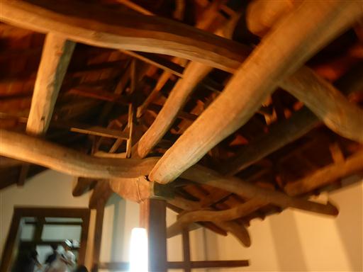 天井は曲がりくねった梁だ。