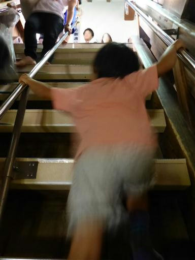 階段を上る。手すりがないと怖いくらいの急傾斜だ。