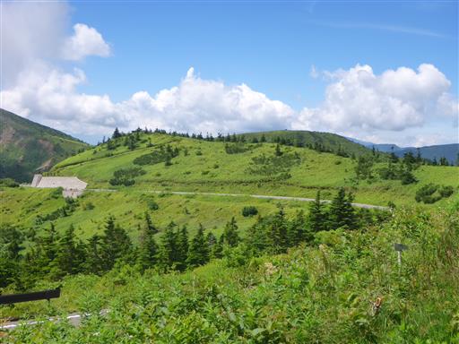 緑の笹と木が美しい。日本屈指の絶景道路だろう。