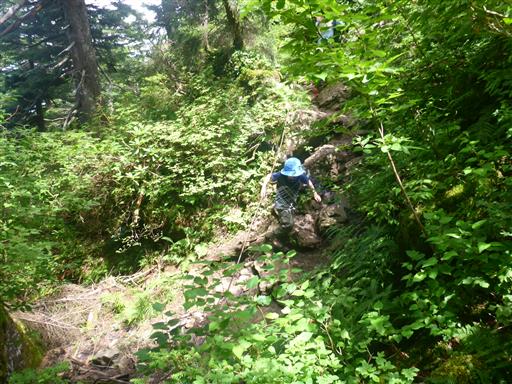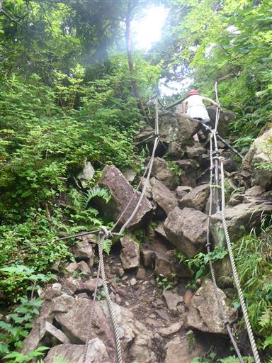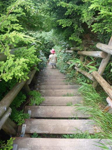 急斜面で段差が大きいため、かなり登りにくい。
