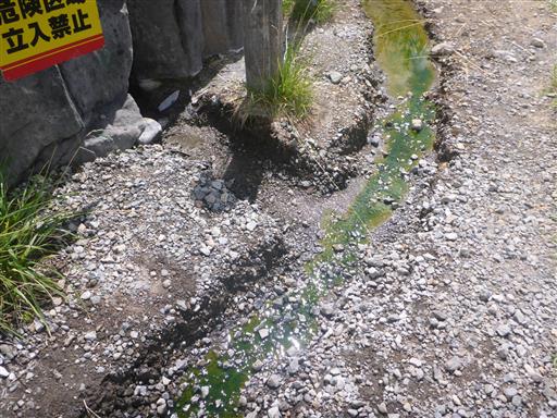 吹き出た湯が流れ出している。触ってみると結構熱い。
