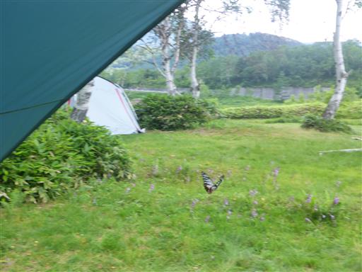 設営しているとアサギマダラが飛んでくる。