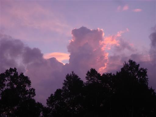 夕日を受けて雲が赤く染まっている。かなり背が高く怖い入道雲だ。