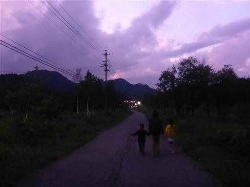 子供達が帰ろうとうるさいので、ホタルを見学せずに引き返すことにする。