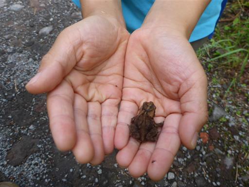 小さなカエルを発見。