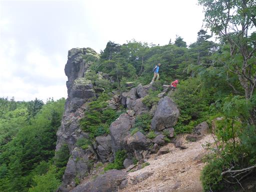 稜線に出たら山頂まではあと少し。しばらく歩くと山頂部の大岩が見えてくる。