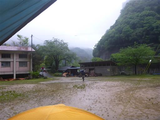 街中は曇りだったが山間にあるこのキャンプ場は残念ながら雨だ。
