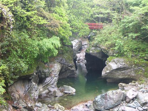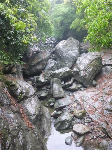 観光坑道を後にする。橋から見える渓谷は巨岩が積み重なっている。