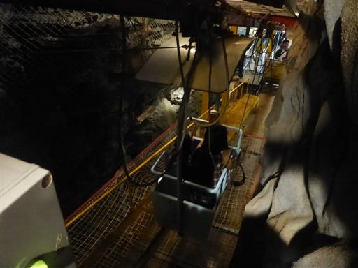 こちらは鉱石を運んだリフトの模型で、実際に乗って下まで移動することができる。